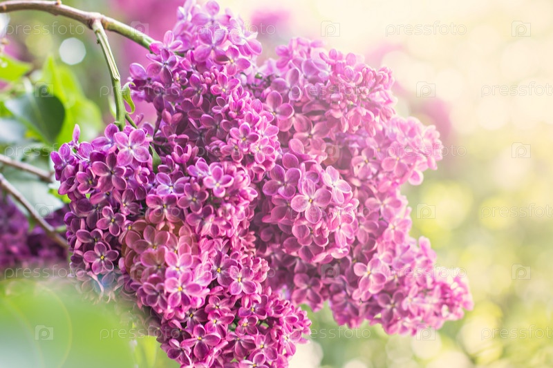 Зеленая ветка с весенними цветками сирени