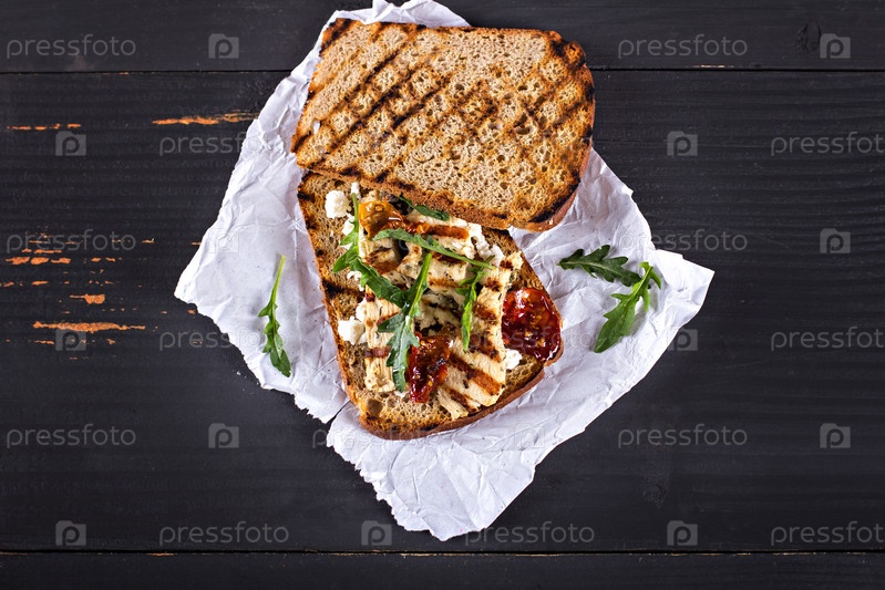 Сэндвич с курицей-гриль, помидорами, сыром и салатом