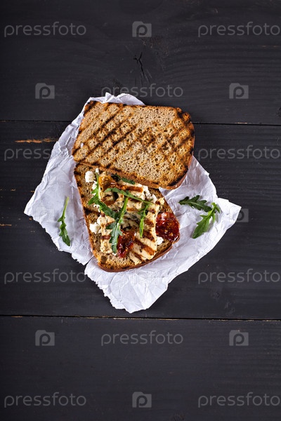 Сэндвич с курицей-гриль, помидорами, сыром и салатом