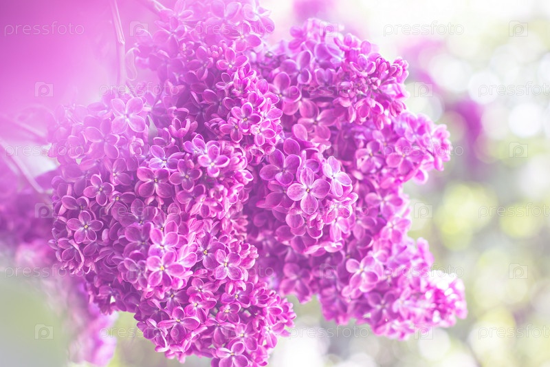 Зеленая ветка с весенними цветками сирени