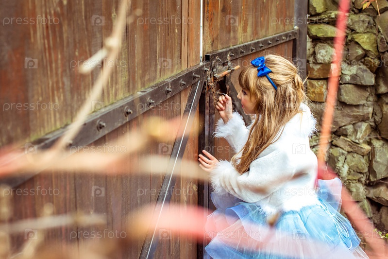 Алиса в стране чудес, глядя в замочную скважину ворот