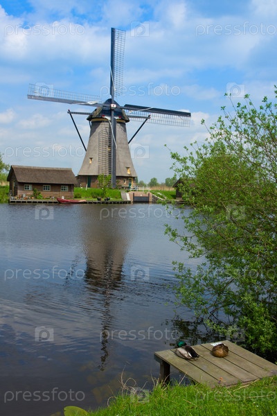 Голландская ветряная мельница в Киндердейке, Голландия