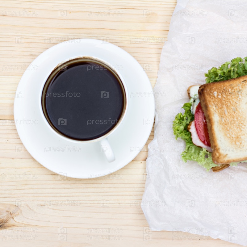 Сэндвич и чашка черного кофе