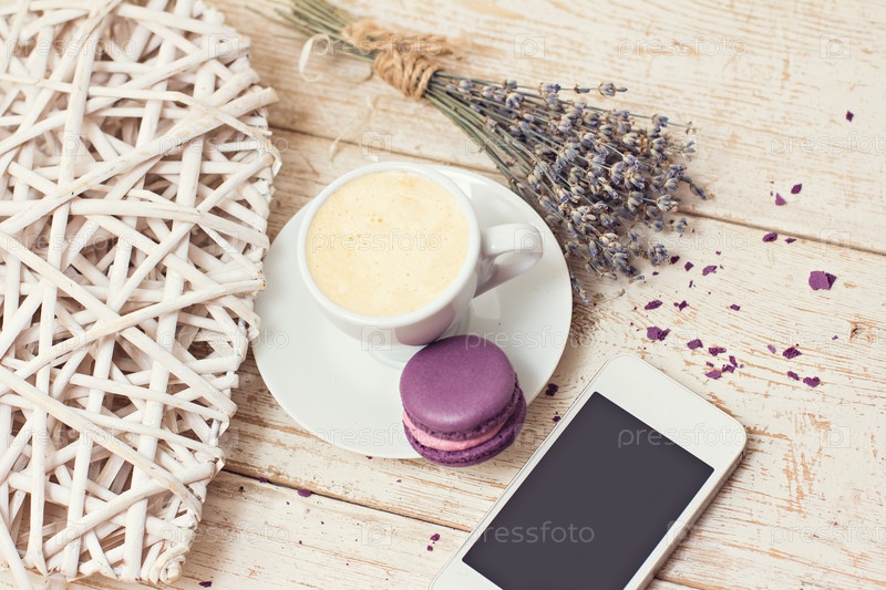 Чашка кофе и миндальное печенье