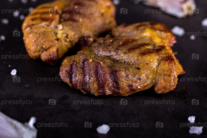 Жареное мясо на гриле со специями и чесноком