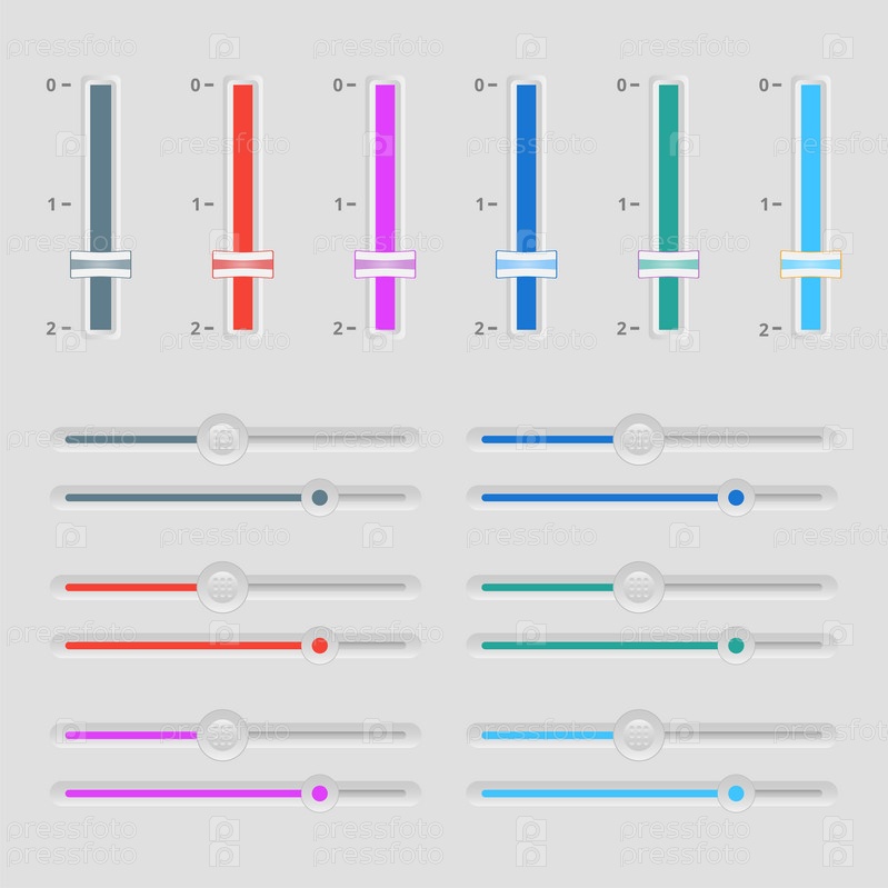 Красочные горизонтальные и вертикальные слайдеры. Ползунки пользовательского интерфейса