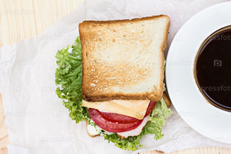 Сэндвич и чашка черного кофе