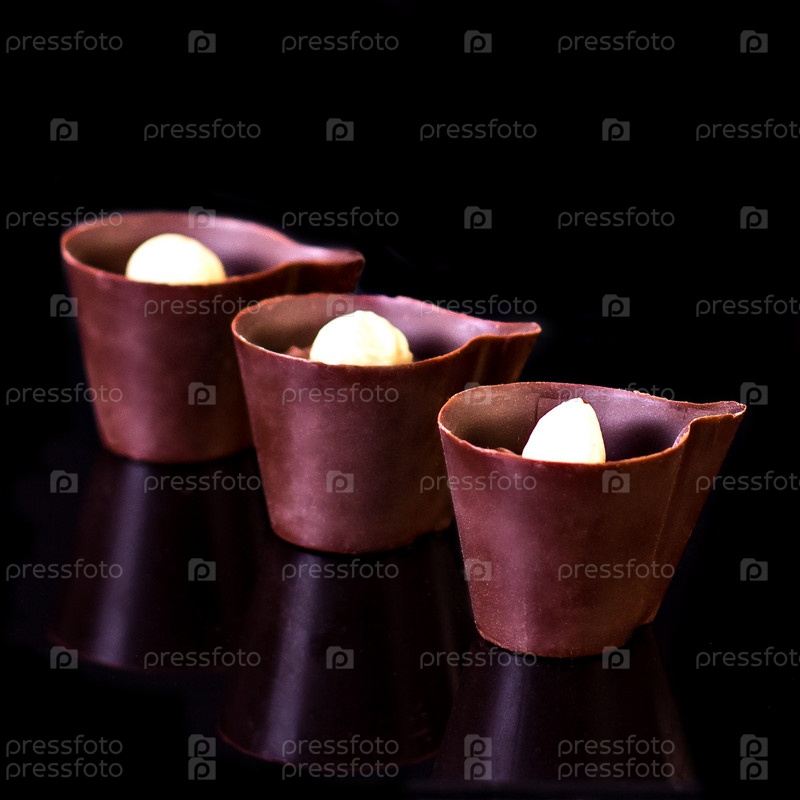 Шоколадные конфеты на черном фоне