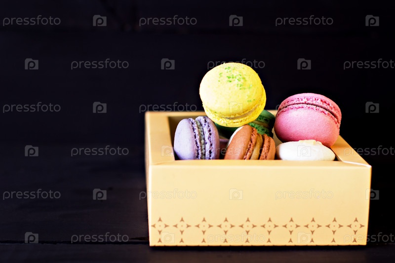Разноцветные макароны в коробке на черном фоне