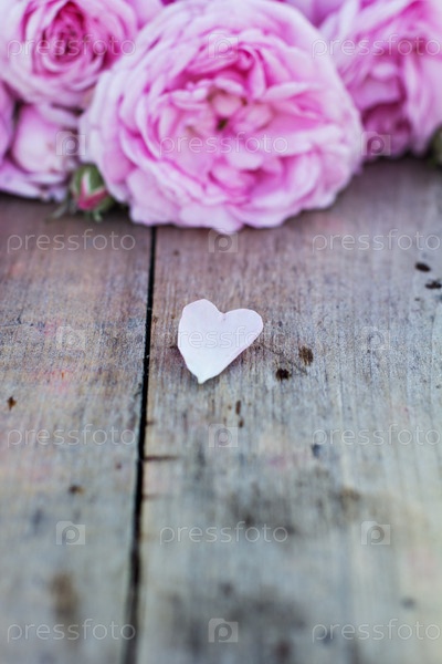 Розовое сердце и розы