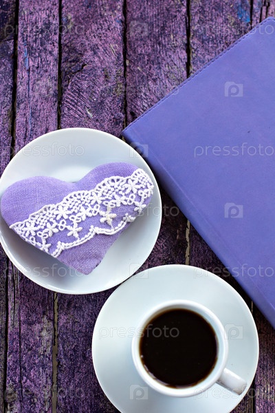 Дневник, чашка кофе и сердце