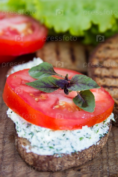 Хлеб с сыром и помидорами