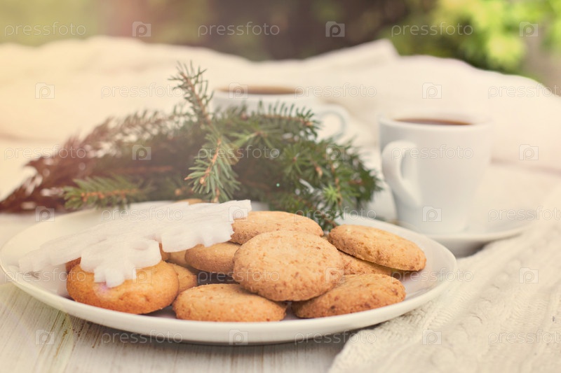 Кофе с корицей и печеньем