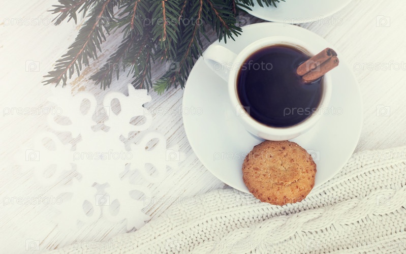 Кофе с корицей и печеньем
