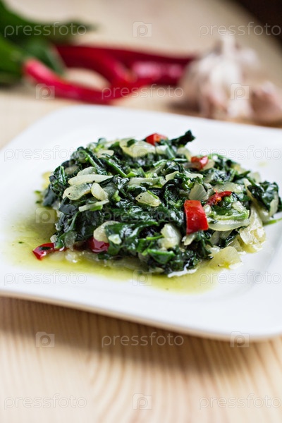 Шпинат с овощами