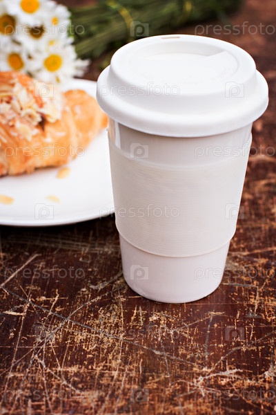 Стакан кофе и круассан