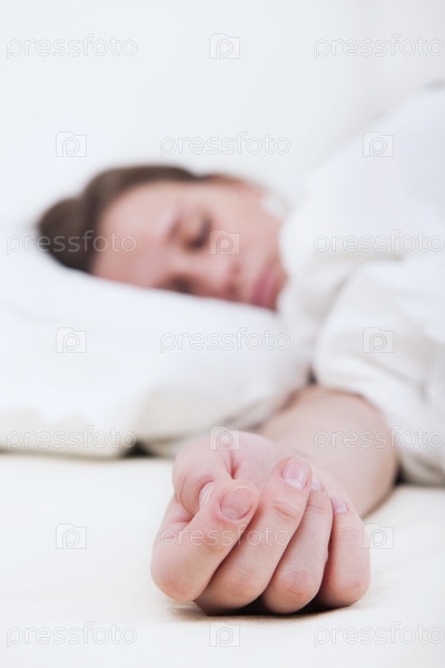 Женщина спит на кровати