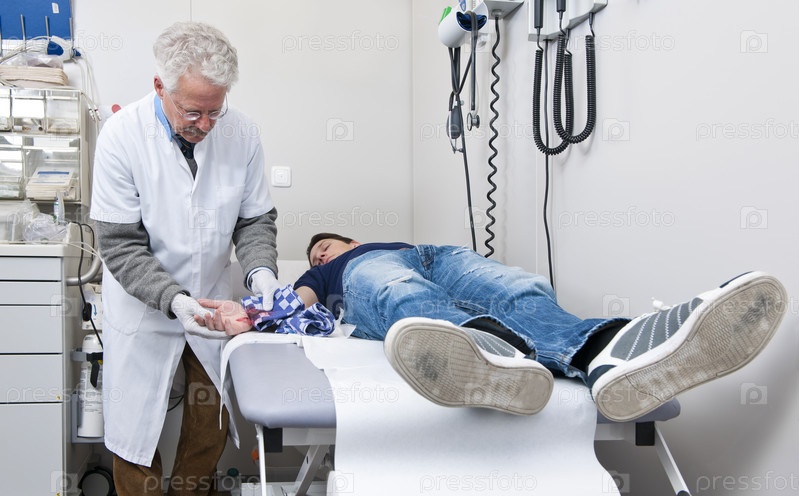 Пациент с порезанной рукой в кабинете врача
