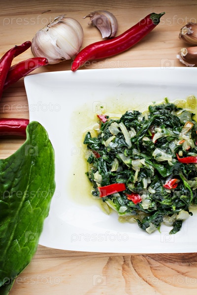 Шпинат с овощами