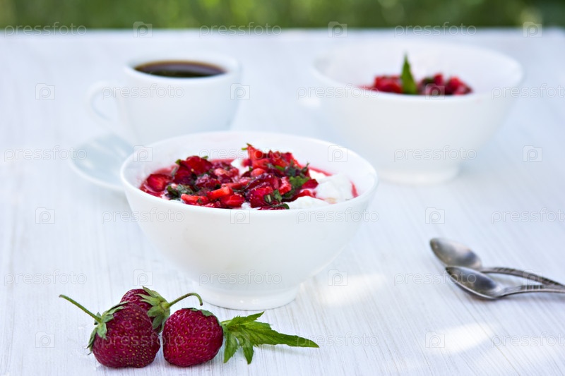 Творог с клубникой и кофе