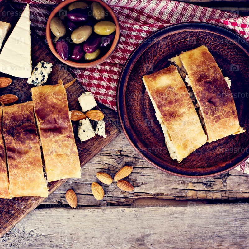 Штрудель с сыром, орехами и грушей