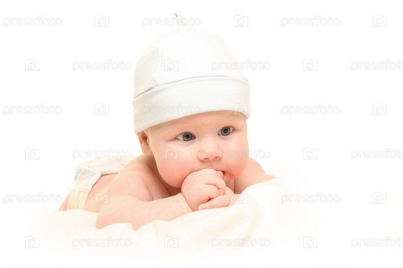 Красивый круглолицый малыш на белом фоне