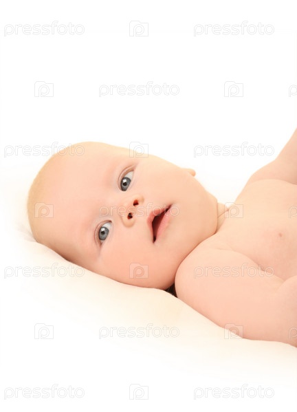 Красивый круглолицый малыш на белом фоне