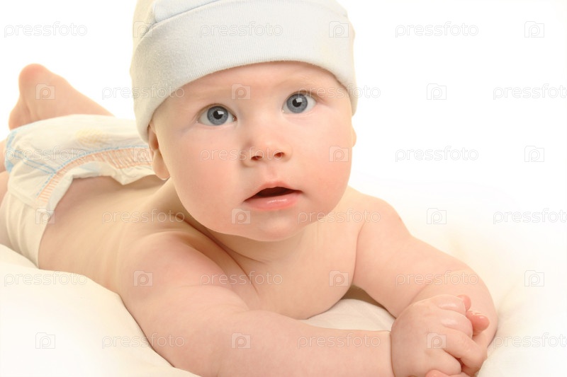 Красивый круглолицый малыш на белом фоне