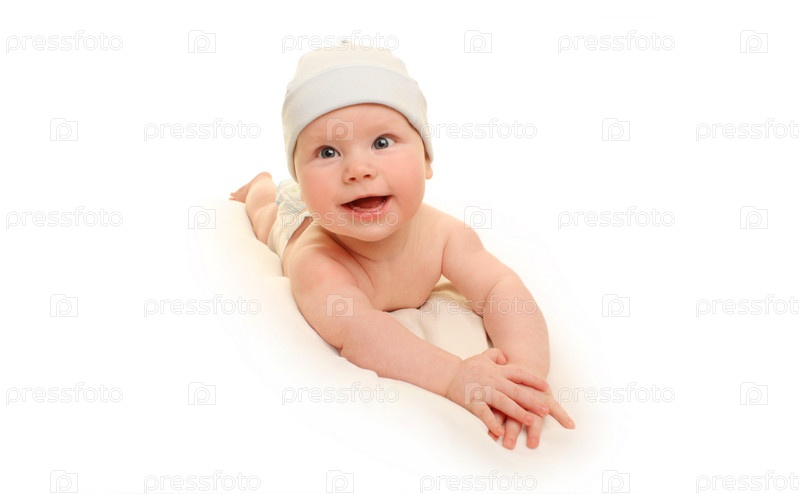 Красивый круглолицый малыш на белом фоне