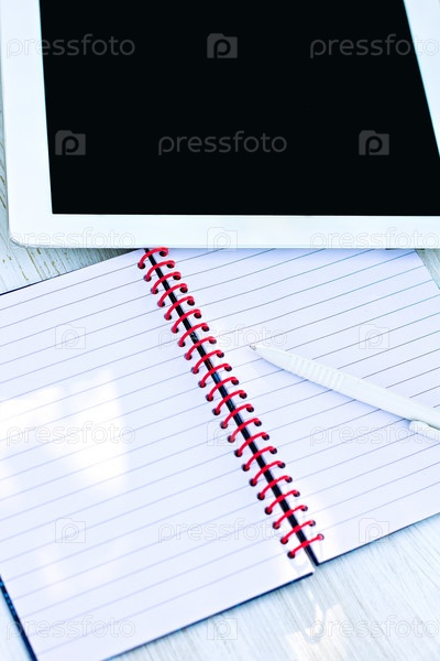 Дневник, ручка и планшетный ПК
