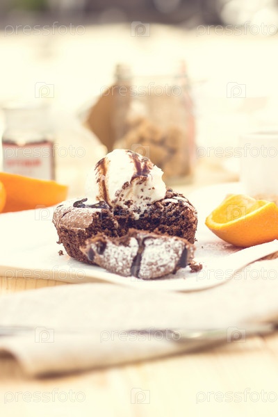 Теплый шоколадный торт с шариком мороженого