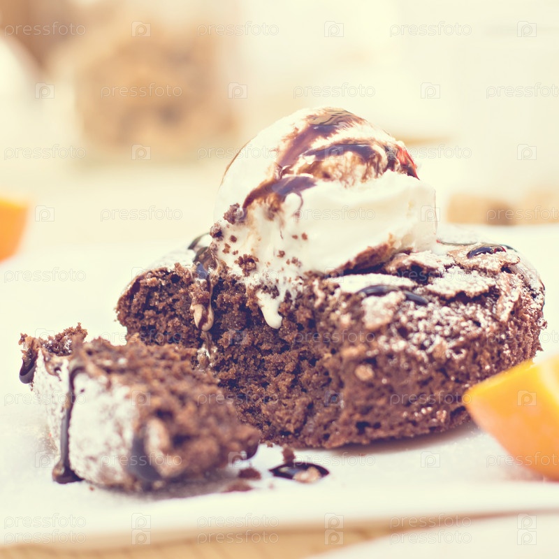 Теплый шоколадный торт с шариком мороженого