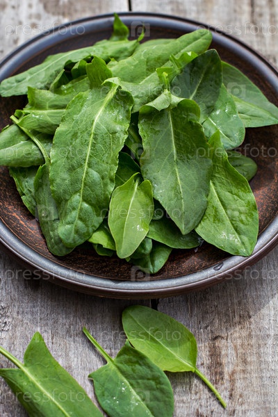 Свежий щавель на тарелке
