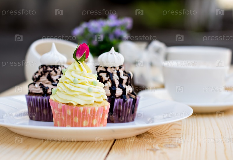 Кексы с шоколадной глазурью на столе
