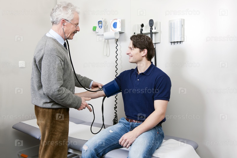 Терапевт измеряет артериальное давление у молодого пациента
