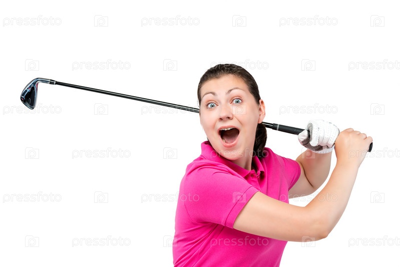 Эмоциональная девушка с клюшкой для гольфа