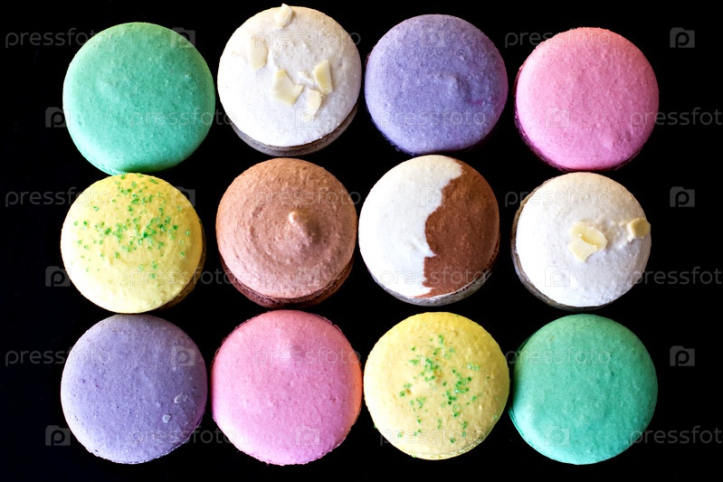 Разноцветное миндальное печенье на черном фоне