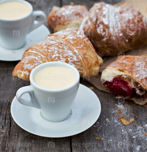 Чашка кофе «эспрессо» и круассаны