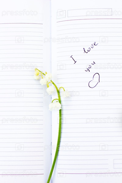 Запись в дневнике «Я тебя люблю» и ландыш