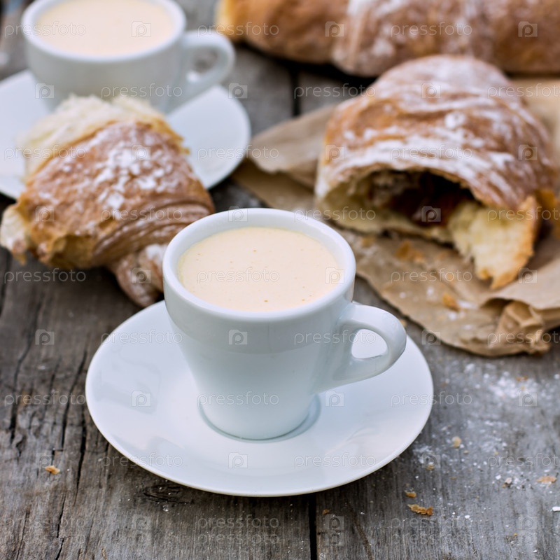 Чашка кофе «эспрессо» и круассаны