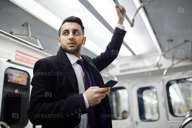 Современный предприниматель в поезде метро