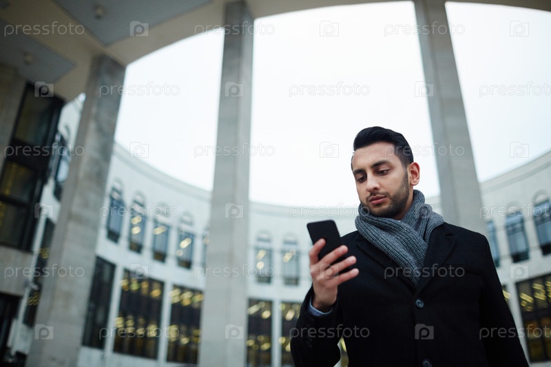 Современный бизнесмен со смартфоном на открытом воздухе