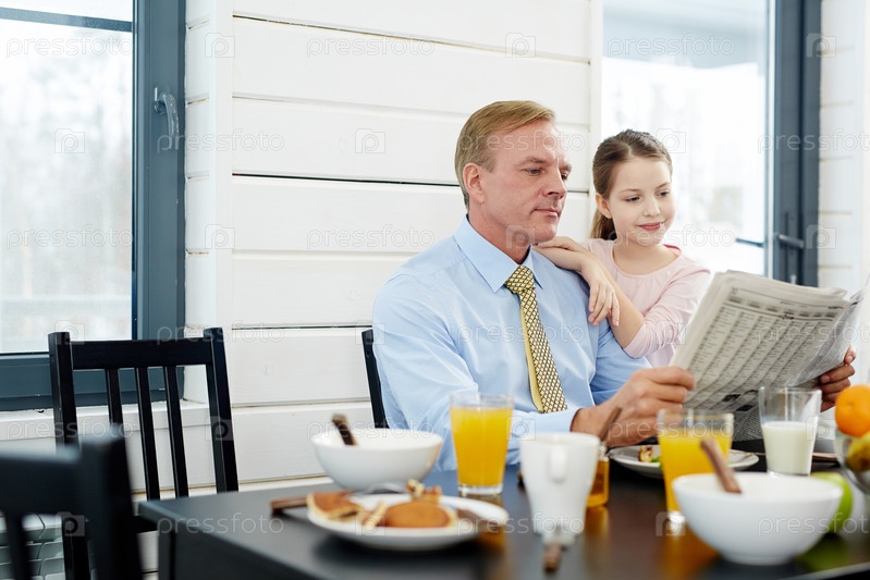 Чтение газеты за завтраком