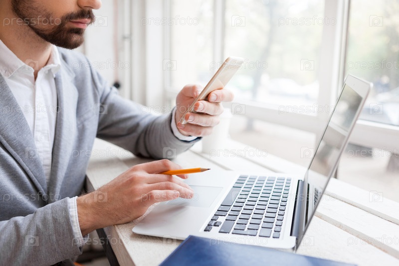 Руки бизнесмена со смартфоном