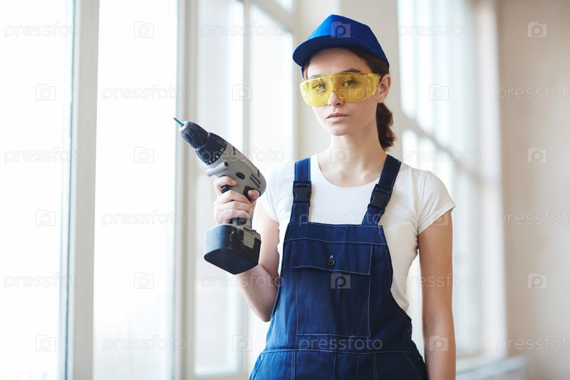 Молодая женщина-строитель