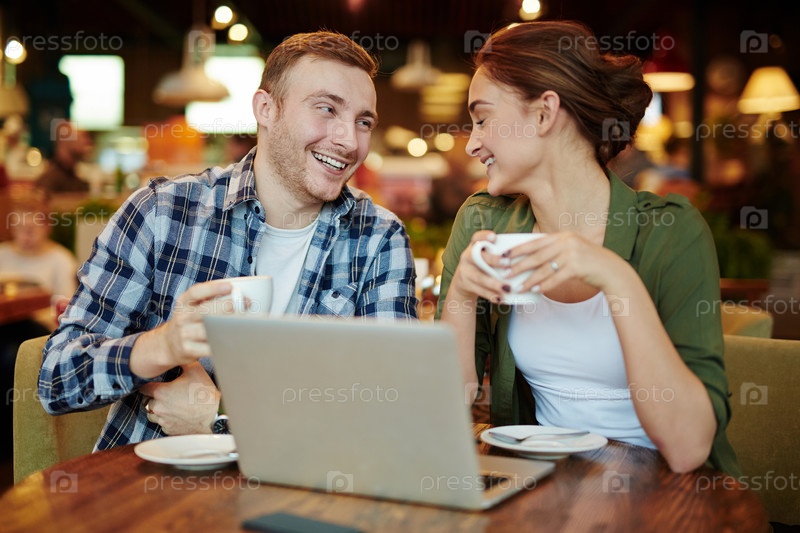 Пара хорошо проводит время в кафе