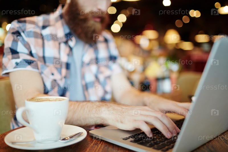 Мужские руки, печатающие на ноутбуке