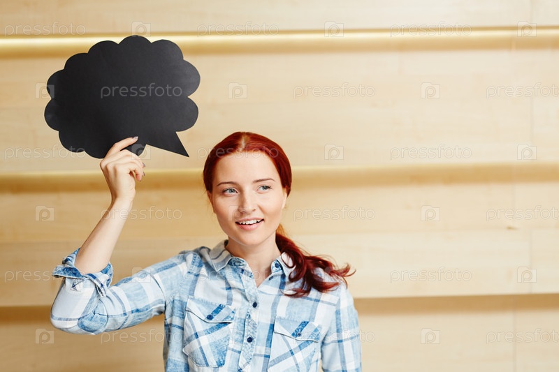 Рыжая женщина с пузырем речи