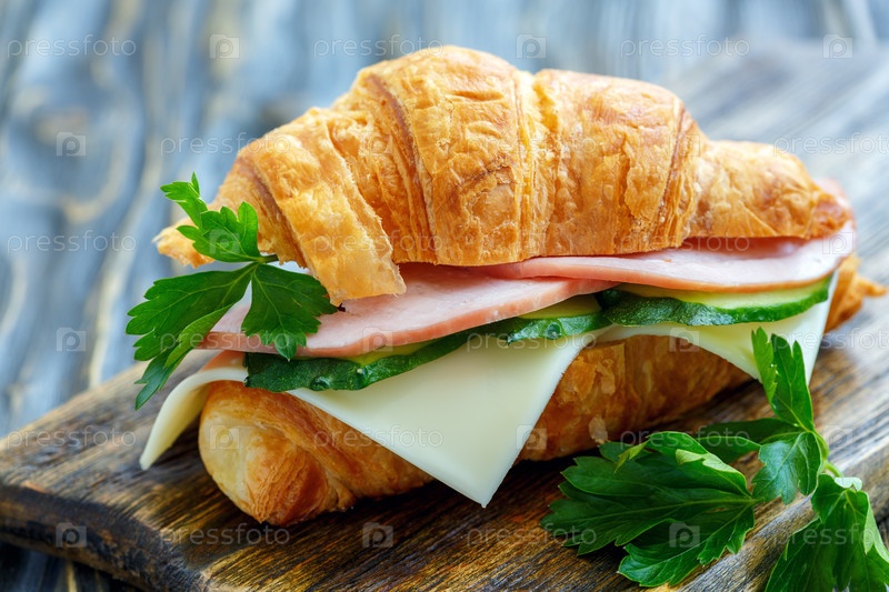 Круассан с ветчиной, сыром, огурцом и петрушкой