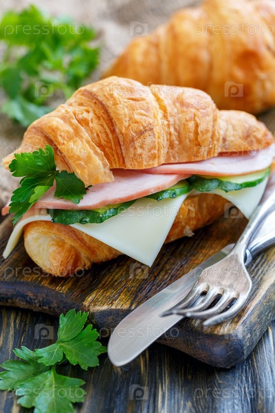 Вкусный круассан с ветчиной и сыром